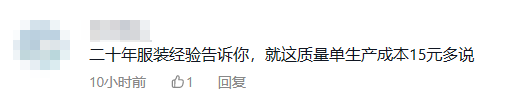 从事服装生产的吃瓜网友也纷纷在评论区表达了自己的观点,有说做出这样的衣服是会被打回厂里的,及自称有二十年的服装经验的网友说,这样的一件衣服生产成本仅15元。一时间关于鹿晗个人潮牌的吐槽铺天盖地而来,该品牌遇到巨大的信用危机。一时间关于鹿晗个人潮牌的吐槽铺天盖地而来,该品牌遇到巨大的信用危机。