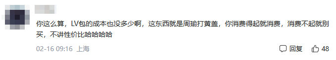 不少网友认为这是潮牌,穿不起就不要穿,买不起就不要买。还有网友表示国际上的很多知名奢侈品品牌成本也很低,一样卖出了天价,所以不要提性价比。