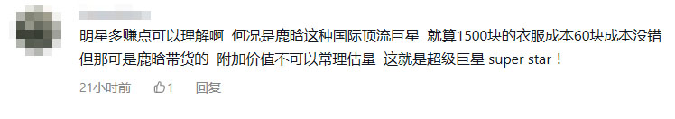 不少鹿晗粉丝觉得虽然衣服成本可能只有60多,但是这是鹿晗带货的,所以这件衣服的附加值被提了上来,而且人家就是靠明星效应来赚钱的,就是值这个价。