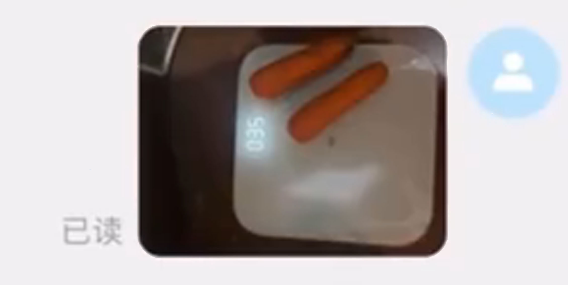 近日,湖北武汉一男子在天鲜配宅送网络平台上买了一些新鲜蔬菜。送上门后,该男子发现标有600克的两根胡萝卜的质量根本未达到这个数值,便在手机上向商家平台提出了质疑。商家便让该男子将这两根胡萝卜复一下秤,然后拍照发过来看看。结果就是这一看,引起两人的强烈争执。