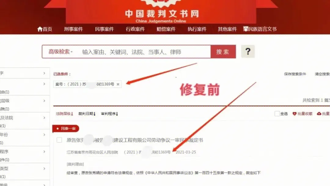 来源:裁判文书修复前后 发表时间:2023/4/10 12:06:42