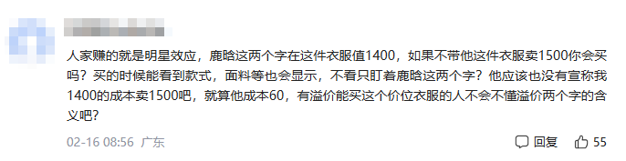 不少鹿晗粉丝觉得虽然衣服成本可能只有60多,但是这是鹿晗带货的,所以这件衣服的附加值被提了上来,而且人家就是靠明星效应来赚钱的,就是值这个价。